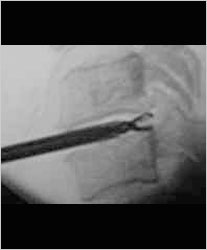 操作方法:通过皮肤把约0.4cm的细管放入椎间盘内,再往椎间盘内放入细的内窥镜并从放大的显示器上确认位置,借助内窥镜把突出的椎间盘碎片用激光直接气化。,这样就可以只摘除椎间盘内病变的部分而保存正常的椎间盘髓核