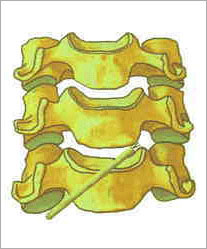 颈椎间盘突出导致压迫神经的图解。颈椎间盘突出导致压迫神经会产生上肢的放散性疼痛,手臂的麻痹,握力的低下等症状。